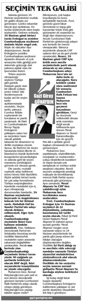 Aslında görünen 24 Haziran seçimlerinin mutlak bir galibi olması zor görünüyor. Çünkü rakamlar birçok şeyi açıklamaz. En sonda söylenecek olanı başta söyleyelim. Gelinen noktada, 24 Haziran günü birinci turda Erdoğan’ın yeniden Cumhurbaşkanı seçilmesi önünde hiçbir engel yok. Böyle de olacaktır diye düşünüyorum. Ancak Erdoğan’ın yeniden Cumhurbaşkanı seçilmesi siyasetin dinamik ve çok senaryolu hâle geldiği yeni sistemde geleceğe dair yalnızca aşikâr olan bir ipucundan ibaret.