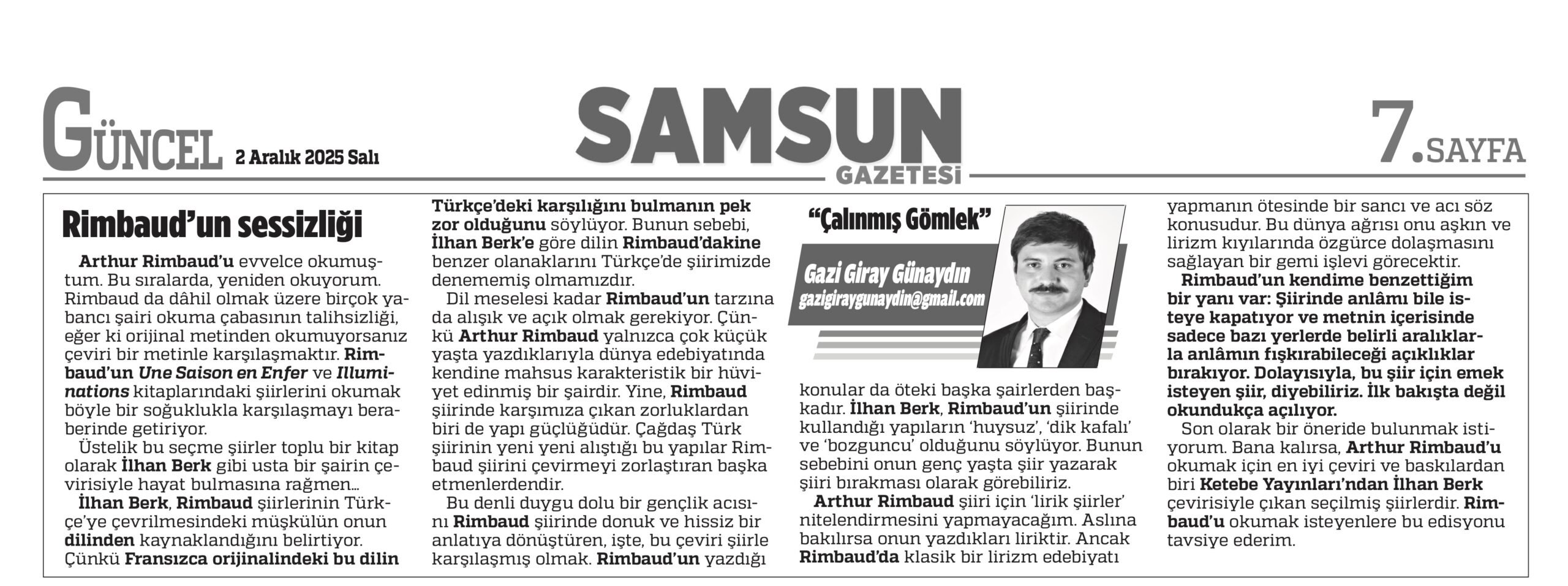 - Rimbaud’un Sessizliği (02.12.2025) Matbu: Bir / İki